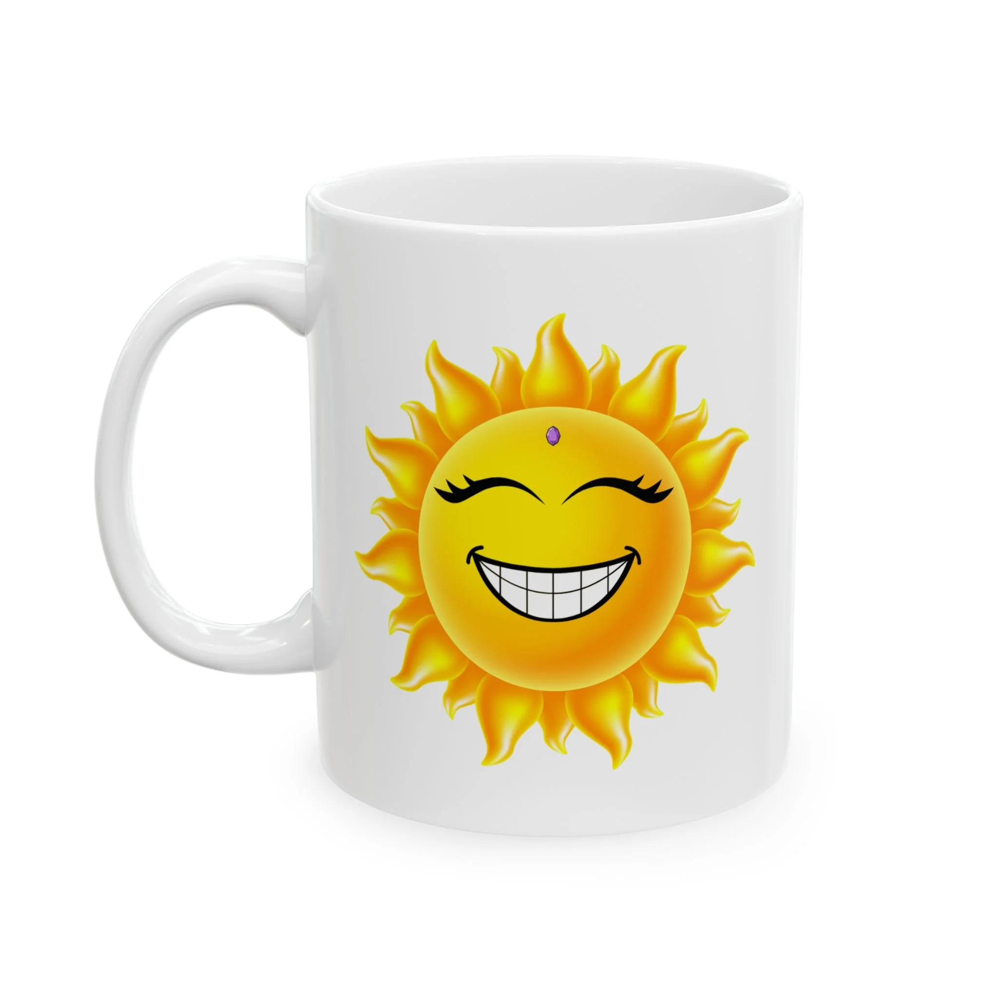 Good Morning, Sunshine! Bright and sunny, this glossy ceramic mug adds a little extra sunshine to your morning routine. The vibrant print stays crisp through daily use, while the comfortable C-handle and shiny finish make the mug easy to hold and pleasant to display on a kitchen shelf. This cheerful little mug is sure to become a favorite part of your daily ritual.