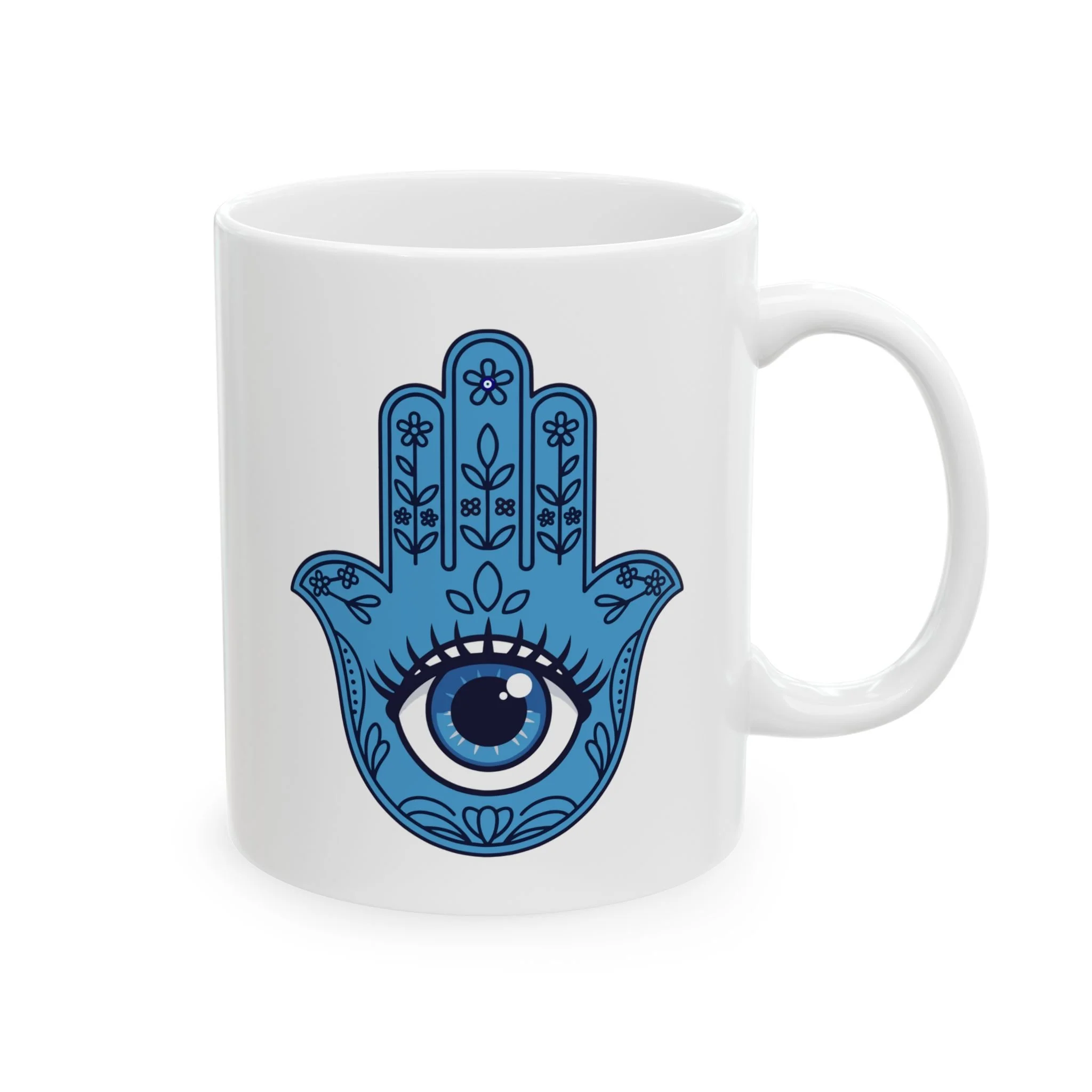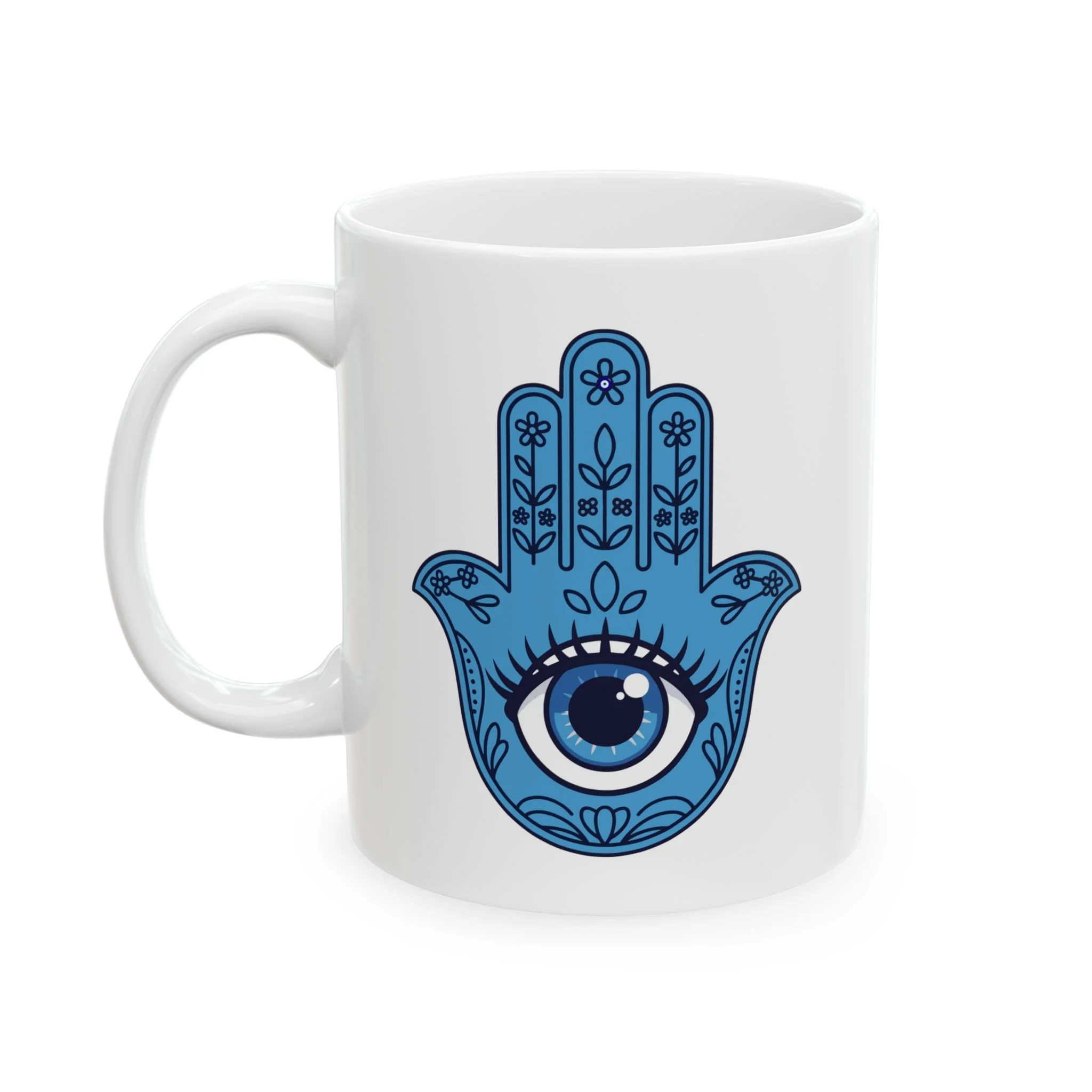 Sip in peace. Stay protected. Infused with the symbolism of the hamsa and the evil eye, this mug is more than just your daily coffee companion. It’s a quiet shield, a reminder, and a ritual all in one. Designed to ward off negative energy and invite in protection, clarity, and calm, it holds your brew with intention.