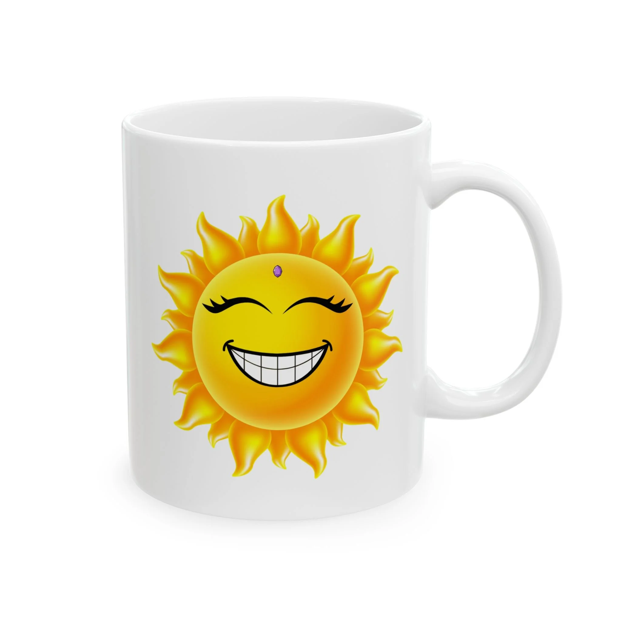 Good Morning, Sunshine! Bright and sunny, this glossy ceramic mug adds a little extra sunshine to your morning routine. The vibrant print stays crisp through daily use, while the comfortable C-handle and shiny finish make the mug easy to hold and pleasant to display on a kitchen shelf. This cheerful little mug is sure to become a favorite part of your daily ritual.